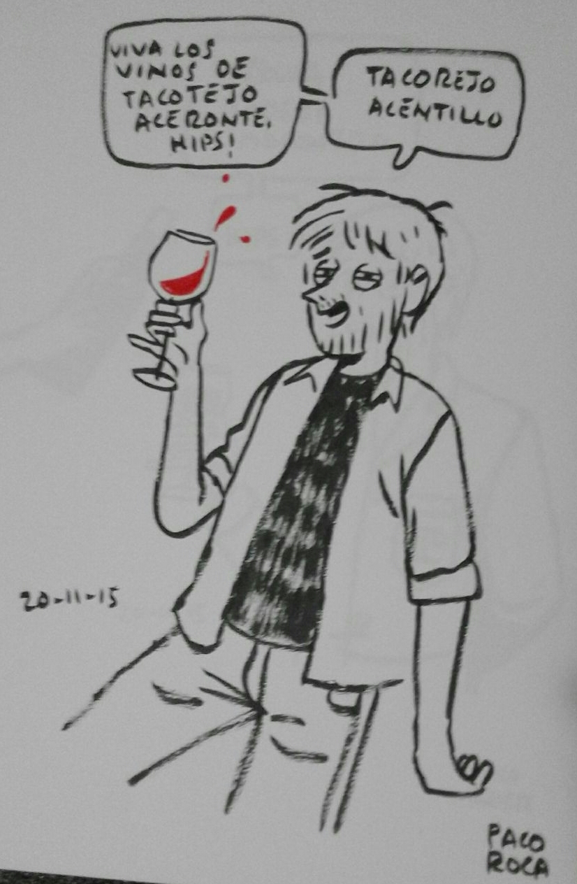 La participación del historietista Paco Roca –Premio Nacional de Cómic en 2008– en la pasada edición de “Noviembre, mes del vino Tacoronte-Acentejo en La Laguna 2015” viene a engrandecer el maridaje ente viñas y viñetas que desde hace años Tacoronte-Acentejo viene fusionando. Su nombre, se suma ahora al de José María Martín Saurí, Dave McKean, Manel Fontdevila, Rayco Pulido, Jaime Martín, Alfonso Zapico, Rubén Pellejero y Kim; que ya habían pasado por la comarca vitivinícola en anteriores ediciones. Además de dedicar ejemplares a los aficionados que acudieron a la cita en Librería Lemus, también ha dejado a su “alter ego” para siempre en algunos locales gastronómicos de La Laguna que desde este blog te invitamos a descubrir.
